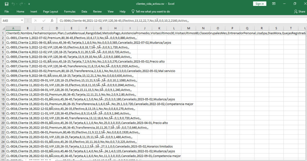 Estos datos pueden estar en diferentes formatos, en tablas de Excel, CSV o en sistemas que es necesario exportar. Como ves, una tabla con datos en bruto es imposible de analizar a simple vista.